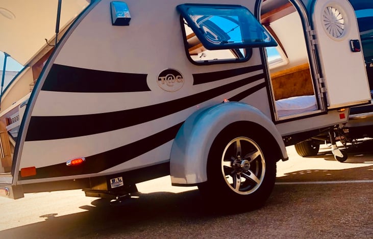 NuCamp 2018 T@G MAX-XL 6' Wide Teardrop **BOONDOCK PKG** (When no shore power at campsite is available. Built-in Solar panel - keeps the battery charged - allowing use of inside/outside lights, electric ceiling fan, pump for small water supply tank, and electric cooler.