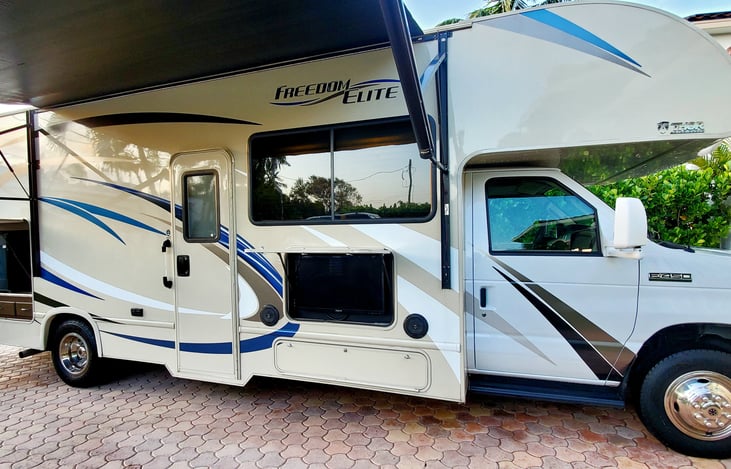 RV CAN ONLY BE TAKEN TO 1 RVCAMP X TRIP - 1 SLIDEOUT EXTENDS MANUALLY, 2ND SLIDE WORKS AUTOMATICALLY. We are Pet Friendly - PICK UP @11AM & DROP OFF @ 4PM - Sunpass & Propane Gas included - Exterior TV, Speakers, Kitchenette with sink & small fridge - 1 AC unit. 30 AMP