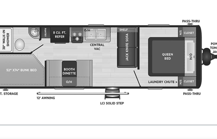 The travel trailer comes with outside speakers and a nice awning for relaxing and enjoying music outside.