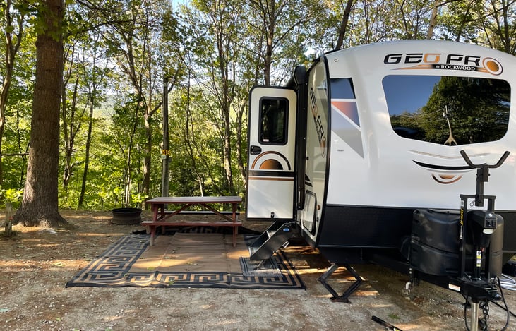 2021.5 Geo pro 20BHS, fully equipped and capable to be off grid if necessary. Geo pro's claim to fame is a light weight trailer towable by mid sized SUV's with all the luxury's of a larger trailer. Can sleep 6 (full bed, 2 bunks and dinette for 2 small children) But 5 comfortably.