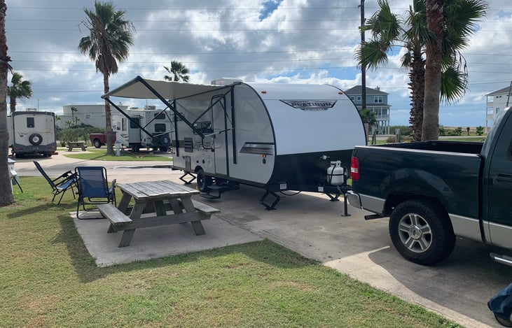 Modern spacious travel trailer perfect for a road trip. Easy for first timers! BUNKHOUSE AND FAMILY FRIENDLY Easy to pull only 22 foot but spacious enough inside to sleep 6 comfortably. Rv Queen size bed is plenty big to sleep two adults comfortably , dinette makes a full sized bed and the 2 bunk beds are large enough to fit two 6 foot guests.