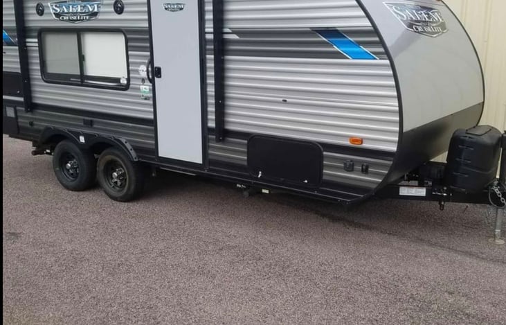 This 2020 Trailer is the perfect size for your travel needs. Trailer has one pull down queen bed and a dinette that converts into bed. Listing includes bedding, towels, fully stocked kitchen including coffee pot and air fryer. Two outside camping chairs and small rug. Trailer is smoke and pet free.