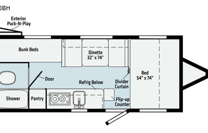 For the family who is ready to camp anytime and anywhere you will love how easy it is to camp with this Micro Minnie. You will find all the kitchen amenities needed to fix your meals while you are away from home.