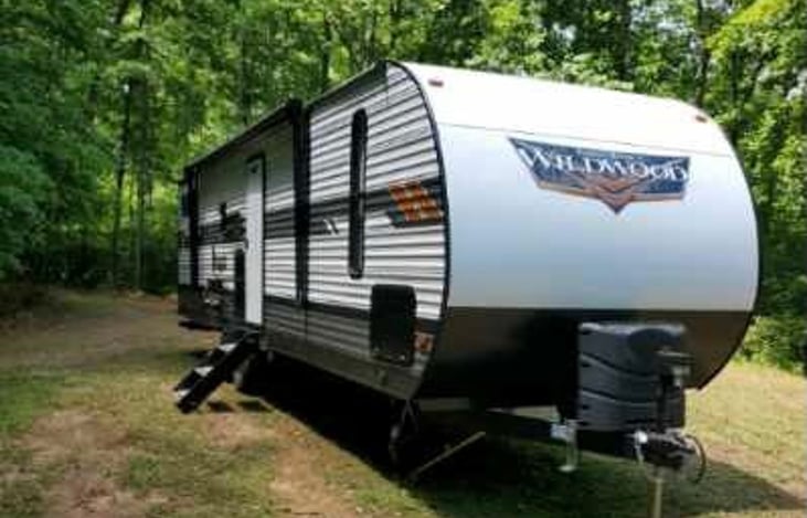 Enjoy a new adventure in style with family and friends in our brand new Wildwood travel trailer! Open living space with PLENTY of sleeping room - up to 10! Small pet friendly! Both the dinette and the sofa open into beds, while the bunk house has 2 bunks and a queen sized bed with its own AC unit(with 50amp service). The master bedroom has a full length queen-sized bed as well.