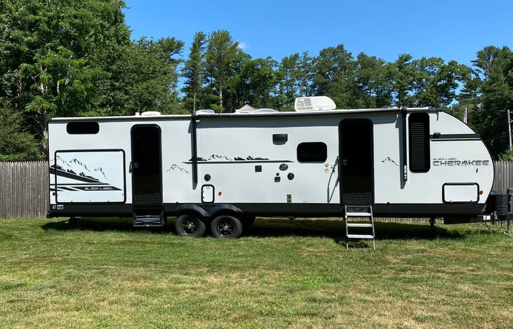 Great camper with big outdoor kitchen! Bunk beds in the back with a queen bed in the front. The couch and dining table both open into beds as well. Good size awning with outdoor speakers. Camper comes with pots, pans, silverware and linens. Our family of four love the camper and ask all renters to treat it as your own! Prefer delivery only unless local.