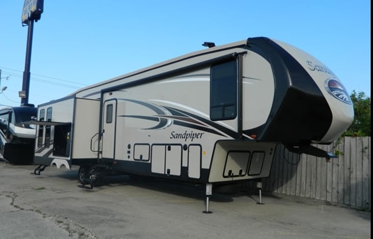 Headed for a getaway?! Enjoy all the home amenities away from home and go in style with our 5th wheel Forest River Sandpiper 37rkok