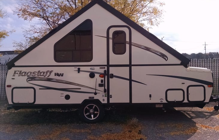Super easy to set up and enjoy. This 20ft A frame Pop-Up is just a ton of fun. One queen bed and dinette folds down for a couple of little people. Full kitchen includes a microwave, three burner stove, fridge, oven, and sink! Also has all the utensils for cooking including dinnerware, pots, pans and flatware. Heater and air conditioner.
