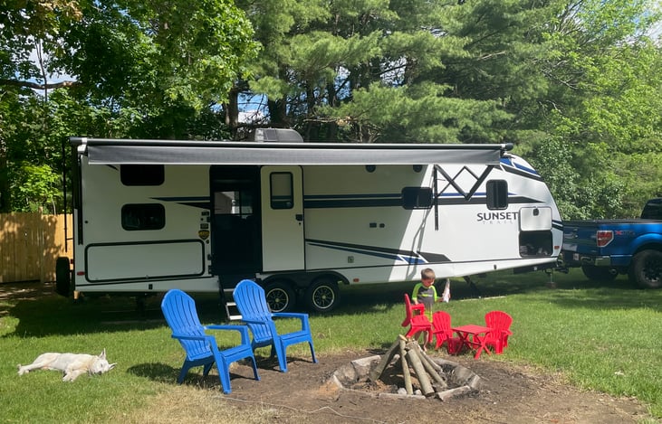 We are a young family of 5 that cant afford to fly anywhere. So we bought a RV. Now we would like to share our RVing possibilities with you. Our 2021 trail tailer sleeps 8 with a full kitchen, bath and entertainment center. The outdoor kitchen allows you to cook outside without tracking in the mess. The entertainment center allows you enjoy any event outside or inside.