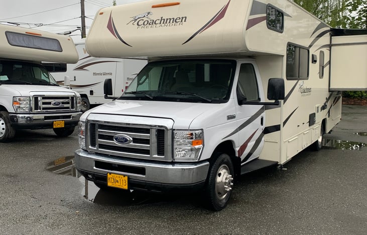This 27 footer Freelander has the state of the art amentias and features. This motorhome includes an automatic awning, an electric generator, refrigerator, a stove with an oven and much more to offer. Rent it today and get the Alaskan RVS for yourself.