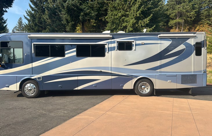 We’d love to share our Winnebago Journey with you when we are not using it ourselves! Don’t let the age fool you! This 37’ has all the latest - Lithium Batteries, Solar, Auto Gen Start, Bluetooth monitoring, Household Fridge, LVP flooring and LED lighting. 7.5 - 8 MPG with a CAT 350 and 6 speed Allison this is a dream to drive.