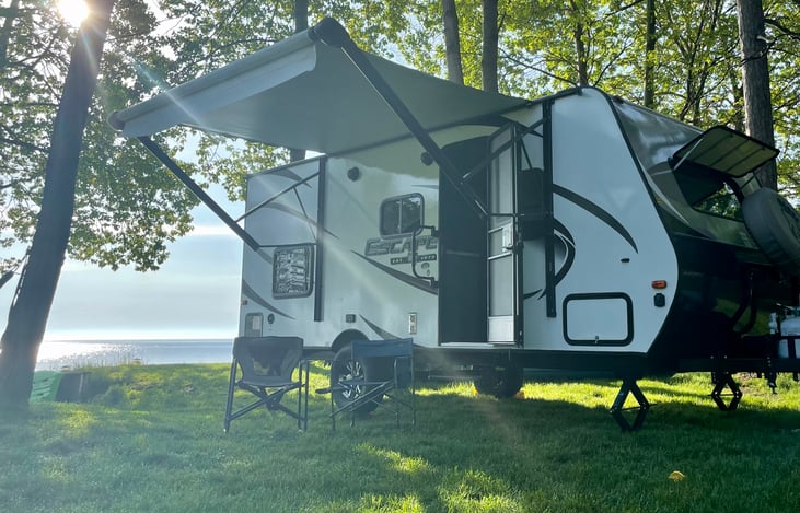 Escape to the UP or northern Wisconsin with our lightweight, bunk house trailer with slide. Great for families with SUVs and small trucks this is an easy tow. We can provide wireless brake controllers, bike racks or other special requests.