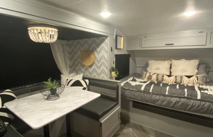 Our 2021 Wildwood 178bhskx is ready to go on your next family trip or romantic getaway for two! She is beautifully decorated to make you feel at home while on the road.