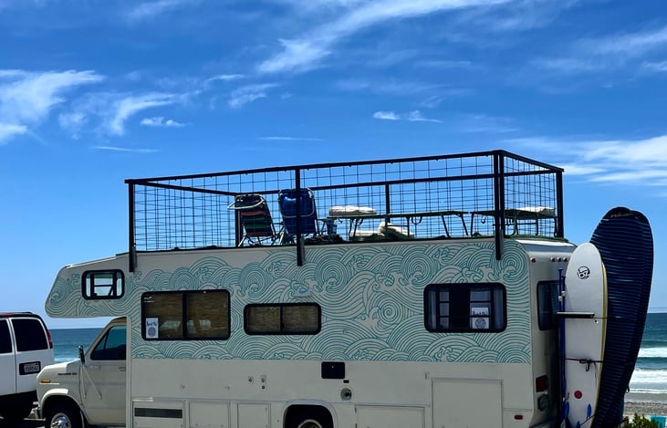 This one-of-a-kind remodeled motorhome is the perfect fit for hitting the beach in Southern California for the day or for a week. It comes fully stocked so all you really need is your swimsuit, food, and drink! She's soulful, comfortable, and simple.