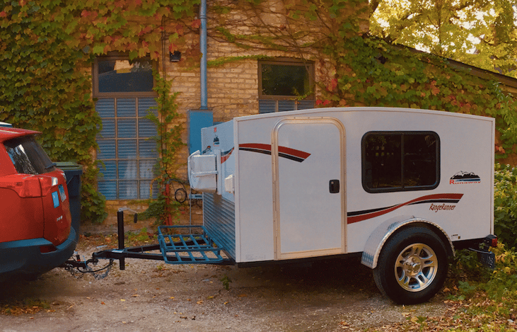 "Climb in and camp out," in this ultra lightweight camper that almost any car can pull. This camper is perfect for those small families that love camping, but want some added comfort and protection from the elements. Teardrop campers can fit into tent sites. This one has a king sized bed, an AC and power strip to charge all of your phones and accessories.