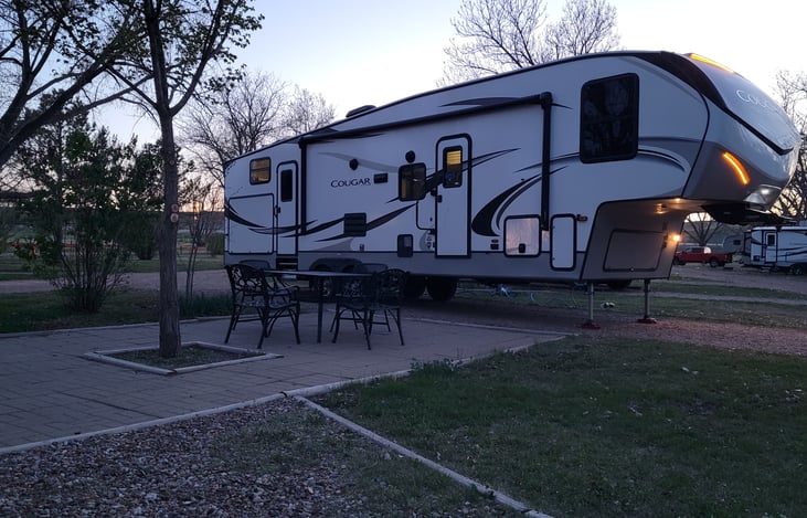 Welcome to the Shitshow Central. This very spacious and beautiful 5th wheel is up for rent! Coming in just under 36 feet long and 12.2 feet tall. Fully loaded tow capacity is roughly 11,500 lbs. It has it all! It sleeps up to 10 people comfortably, we are pet friendly as we have dogs of our own (given they don't chew, destroy, or potty indoors) and it comes stocked!