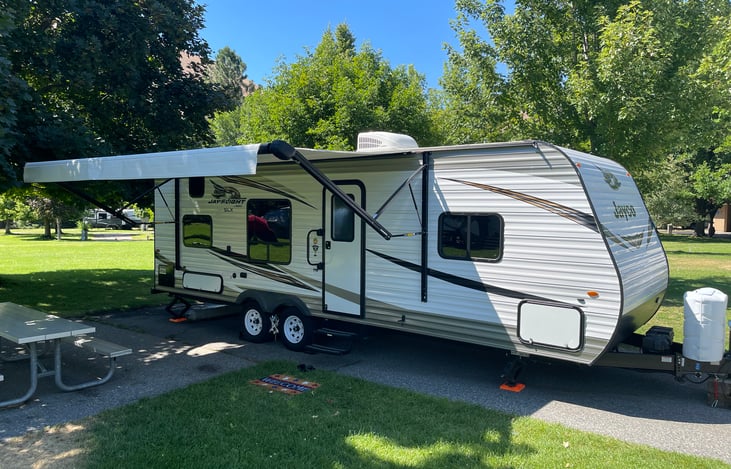 This spacious camper can sleep up to 8 people! Has all of the modern amenities to ensure your trip is comfortable. We will deliver, set up and pick up only within a 25 mile radius of Wenatchee WA.