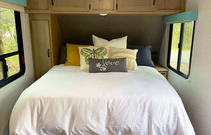 Eleanor is great for couples or for a family with 2 children. There is a queen bed and a dinette that converts to a bed for the kids. Eleanor has indoor and outdoor showers, bluetooth speakers that work inside and outside, and a 32" TV with DVD player and Amazon Firestick.