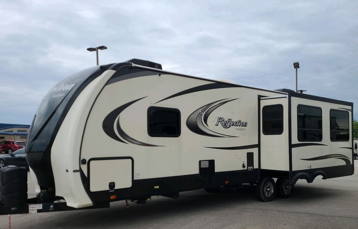 Our 2019 Grand Design Reflection 297RSTS has everything you're looking for....it's glamping at it's best! Bedroom w/Queen bed, Couch w/full size bed, 2 slides, a large kitchen island, an outdoor kitchen, fridge, and lots of storage so everyone will be comfortable and happy!