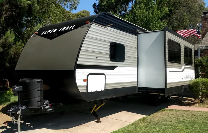 We have set this trailer up for a family adventure from coast to coast. This 2021 Aspen Trail 2810BHSWE sleeps 8 people.