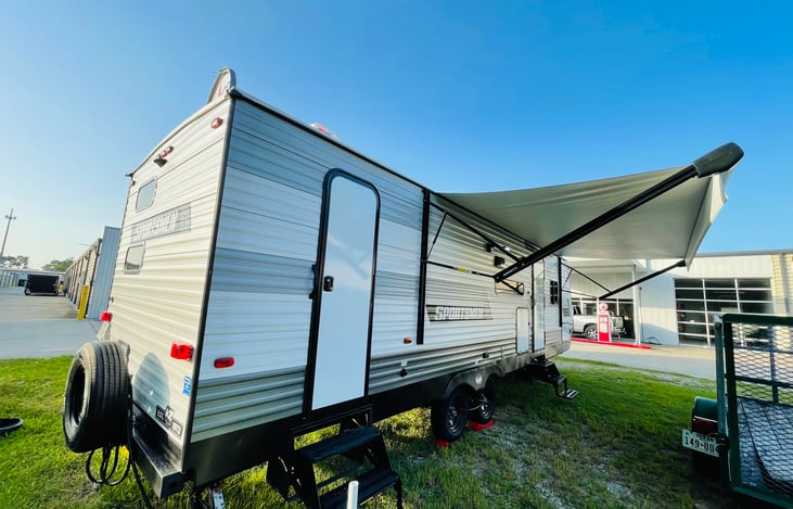 This is a brand new 2021 KZ camper with one slide out. Its total length is 30 feet. It is a bunk house trailer so it has a bunk bed that can sleep up to 4 children comfortably. The sofa will fold out into a sleeper as well that can accommodate 2 adults. The dinette will also convert into a sleeping bed for an additional 2 children or adults.