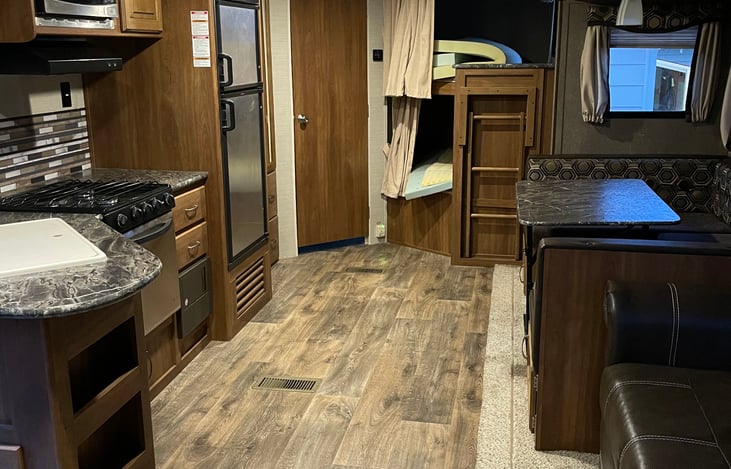 28 feet of living space in this spacious bunkhouse sleeps 6-8 adults comfortably. Vehicle is well maintained and looks like new on the inside. We prefer to rent to families looking for time away together at local state parks and full service campgrounds. The slide out provides a large area for enjoying your time together.