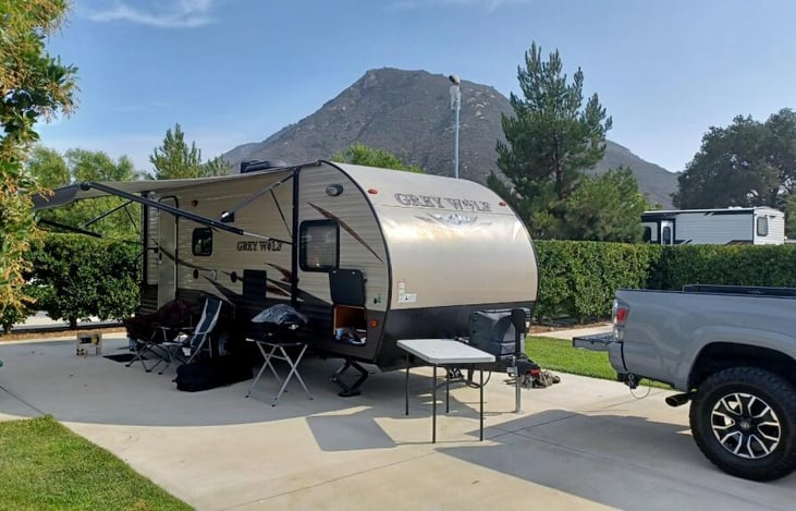 My name is Michael. Both me and my dad bought this trailer to be able to enjoy time with family and visit casino resorts or camp grounds. We've upgraded from a tent and enjoy using our Grey Wolf! We are all about making memories so renting it out to anyone thats about family and memories thats what we love to hear!