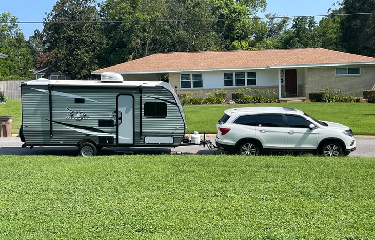 Beautiful 2021 Jayco JayFlight SLX travel trailer. Sleeps 5. Camper has a residential queen bed, a bunk bed with singles and the dining table turns into a small single bed. Has a small smart tv, works with your phones hotspot. I do NOT have a CUA permit for state and national parks for delivery. You will have to drive it on yourself if making reservations there.