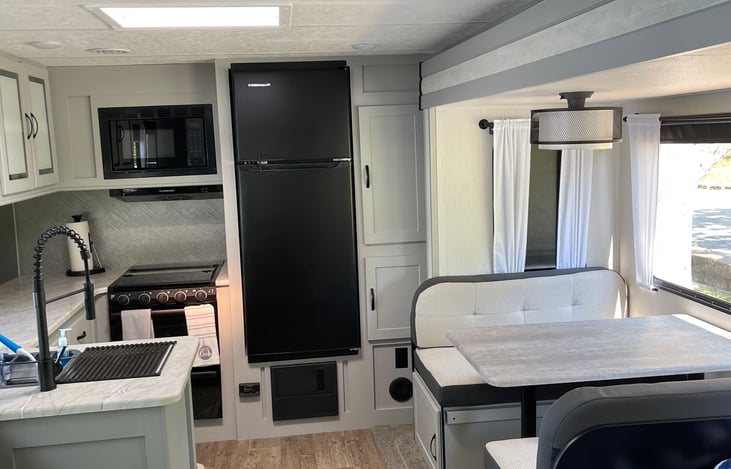 Modern feel to the great outdoors, this 2022 Vibe RV is a perfect fit for all your needs. We setup & deliver at your booked campsite. This would work great for a couple or small family looking to enjoy the great outdoors. Grab your gear for fishing, hiking and enjoy this RV that is equipped to handle all your needs.