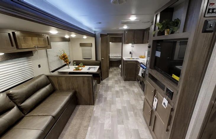 Wow what a clean well kept RV! Felt so roomy with the "bunkroom" and everyone had a great night sleep. Electric fireplace across from the couch kept us cozy and comfy during a cold winter outing.