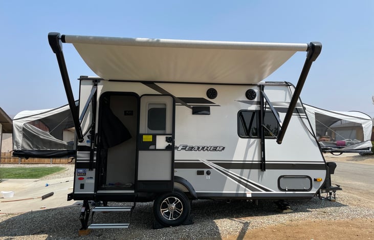 Our lil gup is a brand new Jayco Feather. With all new modern farmhouse interior. It’s light weight and side pop outs make it easy to go with smaller cars. Stop by on your way to the national parks or up the coast. We will also be willing to meet along your route to grab and go with a small fee. Extra family coming to town? We offer delivery anywhere in Tehachapi.