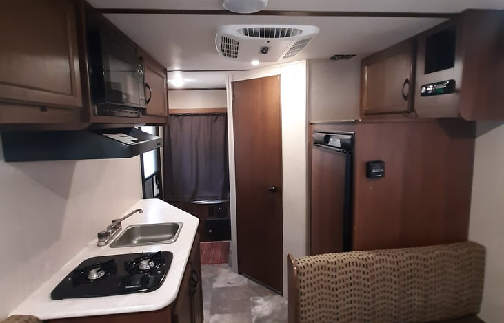Our Jayco Hybrid camper (sleeps 5) offers the feel of tent camping with the protection and ease of camper life, especially when the weather can take a turn- which is notorious in Colorado. Two Queen pop outs offer lots of sleeping space, and the bench dining area coverts to an additional twin size bed. The bathroom offers an upgraded full size RV toilet, shower & sink.