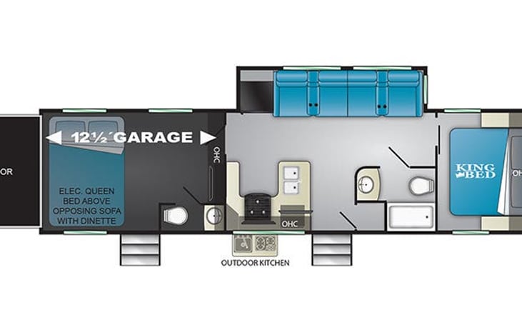 Make your camping trip special with a 2021 Heartland Torque Toy Hauler Travel Trailer. 1 King Bed, 2 Queen Bunks in Garage/Room, 5 Leather Recliners, 1.5 Bathrooms, Full Indoor Kitchen with gas range and solid surface countertops , Outdoor kitchen with Flat Screen TV. Flat Screen TV in Living/Dining area, Indoor/Outdoor Bluetooth JBL sound system.