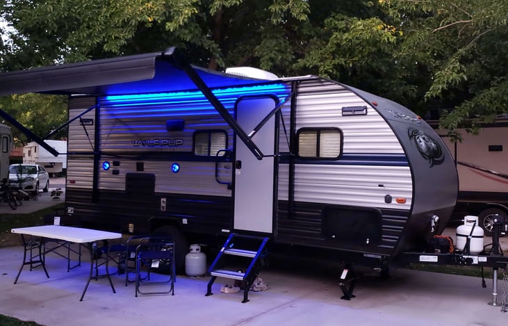 Welcome to our 2020 Forest River Wolf Pup Travel Trailer. It has a dry weight of 3800# with a max gross weight of 5000#. It is elegant upscale unit with modern features, and comes fully stocked with all of your typical camping amenities. It has plenty of storage space underneath the queen bed and more under the sofa.