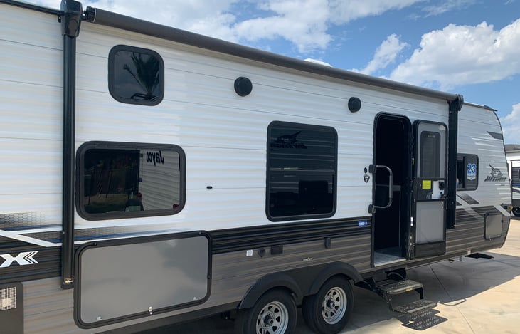 We are a family of three; Eric, Megan, and our 2yo son who love new adventures. We believe traveling is the greatest adventure of all and enjoy spending time as a family traveling the United States. We especially enjoy outdoor scenery over the city and can usually be found near a mountain, lake, or beach. We are excited to share our trailer with your family for your next adventure.