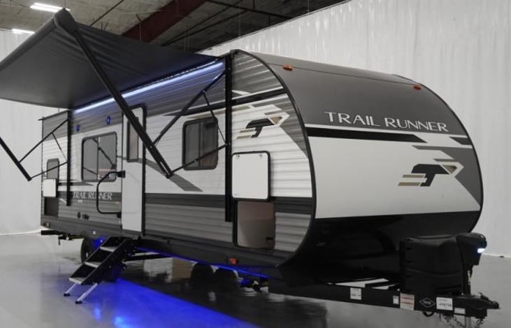 Brand New Sanitized 2022 Trail Runner aka "Truth" Bunkhouse that comfortably sleeps 9, with great upgrades that will make your getaway the best! Fully stocked with basic kitchen supplies, coffee brewer, starter RV toilet paper, and complete weight distribution hitch system.