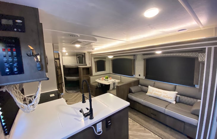 This travel trailer was amazing. We rented this to participate in a RV camping event locally. We do not even own this thing and people who were apart of this event commented on how clean and spacious it was. The nice touch was the electric fireplace. Came in handy for those cold nights when you wanted to limit the usage of the heater that uses propane.