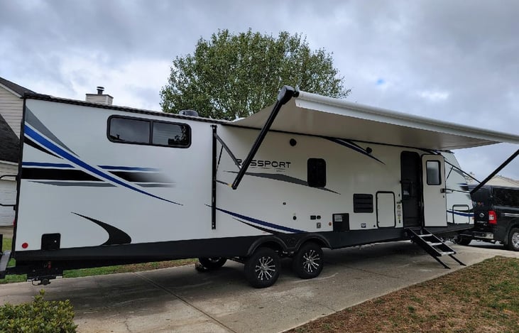 Our 2021 Keystone GT3400QD travel trailer is perfect for familes. The layout is very spacious with a queen size bed in the front bedroom and 4 fullsize beds in the bunk room in the back. There are 2 TV's and comes stocked with bed linens, towels, dishes and cookware. All you need is personal items. Rental delivery and setup is available.
