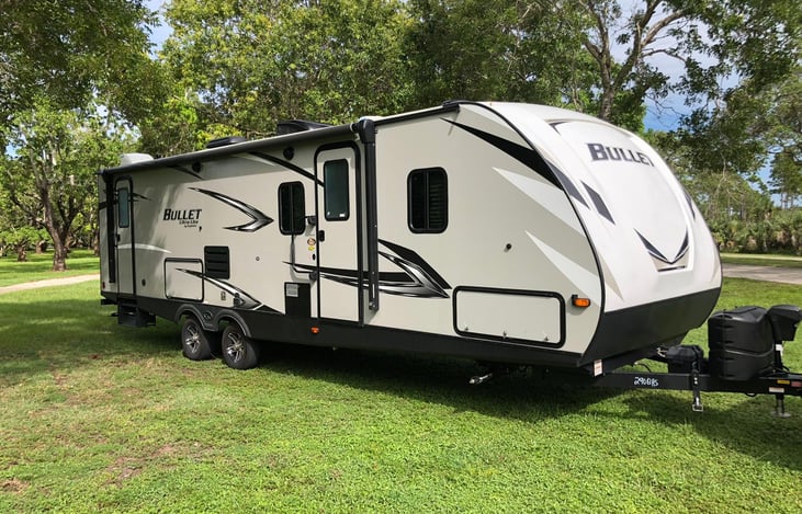 You will love how accommodating this Bullet travel trailer is! Because this unit can sleep nine people, it is a great option for those who travel with large families or like to host big weekend parties, and the front private bedroom will give you a place to escape if your guests get a little too wild.