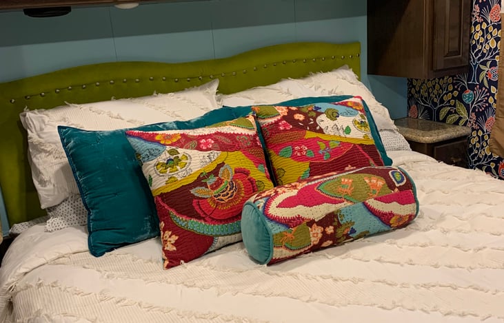 This family friendly RV is perfect for your next trip. With updated fun and bright decor, this colorful and modern RV will be as enjoyable indoors as the outdoors you are bringing it to.