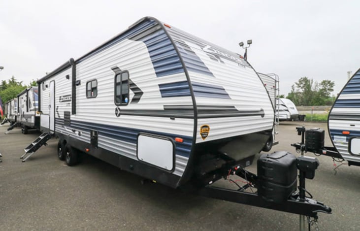 2021 CROSSROADS ZINGER 280BH, This New 2021 Crossroads Zinger 280BH has 1 slide out, an HDTV, a sleeper sofa and a U shaped booth dinette in the living area. The kitchen has a double bowl undermount sink, a 3 burner stovetop with an oven, a microwave and a 2 door refrigerator. At the rear is a full bathroom with a walk in shower. Next to the bathroom is a set of double over double bunks.