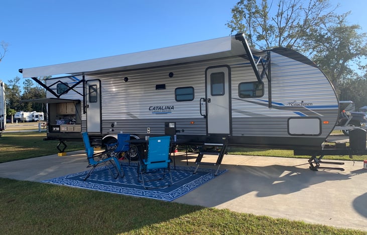 Our New 2021 Catalina Coachmam RV, whom we call the Dream Chaser! She is your home away From home! Great for that road adventure or local excursion you have been wanting to take, weekend get away, or hosting family and need more space.
