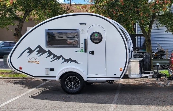 See floorplan, stock photo of interior and exterior at https://nucamprv.com/. Make sure you see the Boondock exterior stock photo. Your rental will be white but otherwise similar to the stock photo.