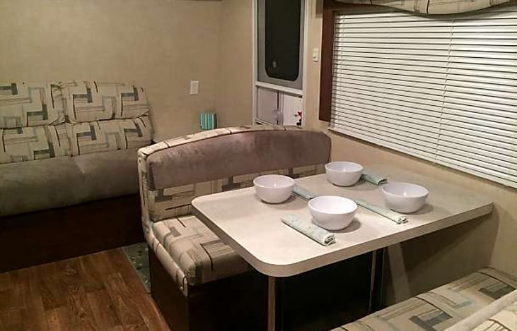 Sleeps 4-5. Easy to tow. Bedding, pots and pans, utensils all included. Perfect for your next camping trip! Generator available for extra fee. Small dogs welcome.
