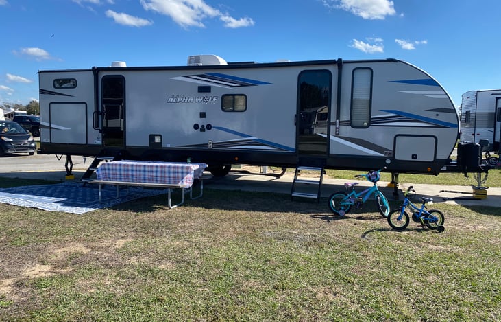 - No chemicals or materials that would stain are allowed inside the RV. No chem lights/ Sharpies etc. Any damaged surfaces will be replaced at actual cost to renter even if it exceeds the deposit amount