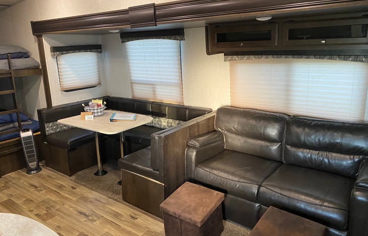 Meet Autumn! She has a single slide out, 19’ lighted power awning (DISABLED), and 32" TV in the entertainment area. The primary queen bed has an upgraded mattress pad for ultimate comfort. This unit includes a smart blu-ray player and a beautiful electric fireplace! Has haul-friendly tow package to pull a second trailer (boat, etc). 30-amp electrical hookup.