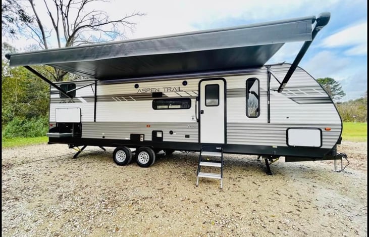 Full-family RV rental that will be delivered to the campground of your choice up to 75 miles from Texarkana. This camper can sleep 5 comfortably. Very well cared for and super clean. It has most amenities that you need to camp comfortably: an outdoor kitchen, dishes, cookware, games, and main seasonings used for cooking.