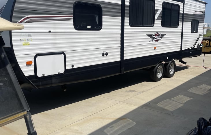 Unique Camper and ready for some Campin’Fun! This camper stands out from others, this one has a special feature it has a exterior door to Bathroom that way you can be entered from outside of the camper so you don't have to disturb anyone in the inside and just enter the bathroom. The two bunks are special, this is like a little area the kids can have their on space.