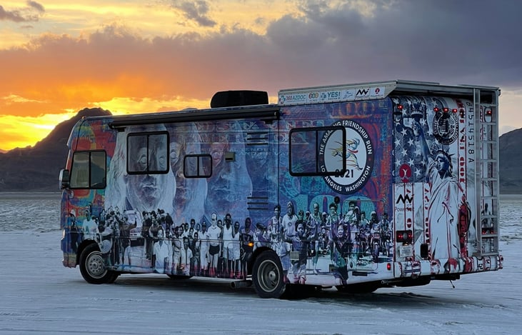 I bought this rig and wrapped it in Transparent Artist's work for use in a cross-country charity run in summer of 2021 featuring San Cottrel (78 year old man who holds an world record for fastest cross country run - 40 years ago). The interior is warm and classic with real wood. All of the upholstery was redone in high-quality material 2 years ago. The highlight is the 8'x8' rooftop observatio...