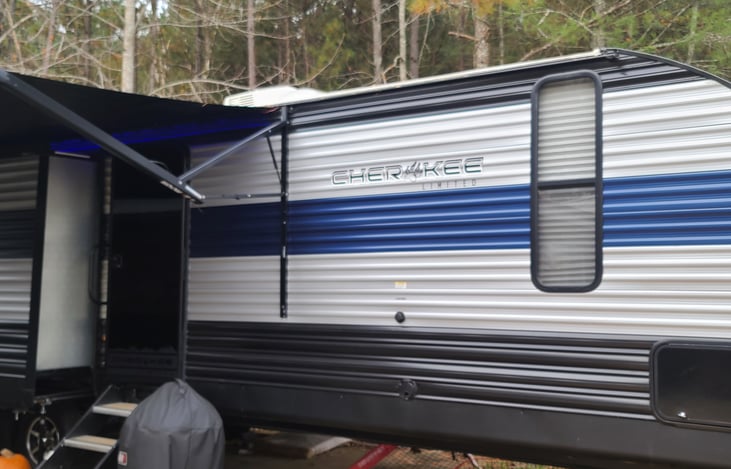 This 2021 Forest River Cherokee Travel Trailer features Wi-Fi, rear bed bunks, mini outdoor kitchen with refrigerator, ice maker and grill/griddle. It's loaded with storage including the multiple exterior compartments, cabinets, pantry, closets and more!