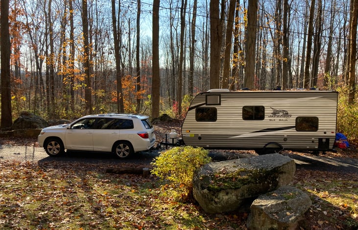 Small enough to be towed by our pick up truck and big enough for the 5 of us to feel comfortable in the space. Pick up was great and communication was awsome.